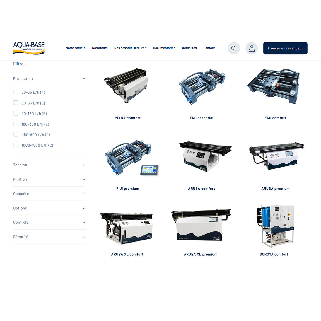 Les dessalinisateurs AQUA-BASE® ont été conçus par SLCE pour répondre à vos besoins en eau douce et vous offrir le même niveau de fiabilité et de simplicité que les autres dessalinisateurs SLCE. Très simples à utiliser et à installer, les dessalinisateurs d'eau de mer AQUA-BASE® sont livrés avec leur kit d'installation et un manuel d'instructions détaillé.
