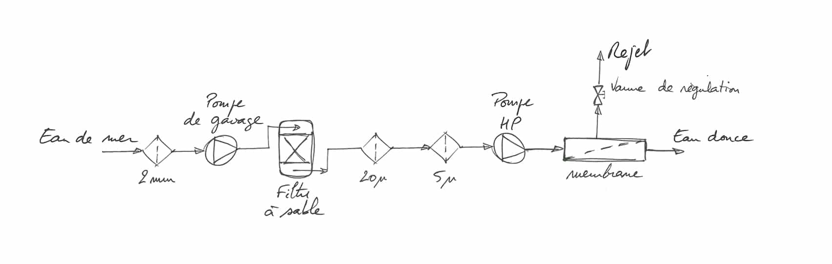 La qualité du prétraitement de l’eau de mer est décisive pour le maintien des performances de l’osmoseur dans le temps.