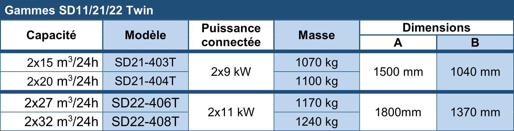 Capacité donnée à +/-10% à partir d'une eau de mer standard à 25°C et 35g/l.