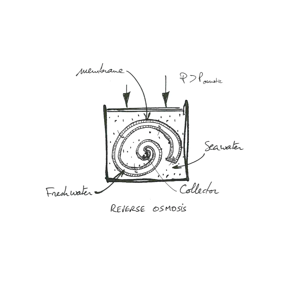 To further improve the compactness of the membrane, it is wrapped around the freshwater collector, forming a spiral.