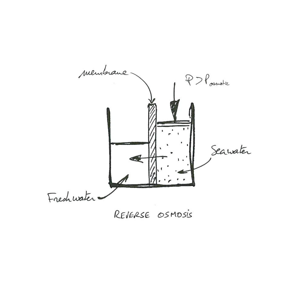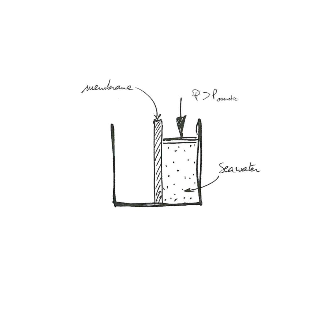 If a pressure higher than the osmotic pressure is now applied, the flow of fresh water passing through the membrane is reversed.