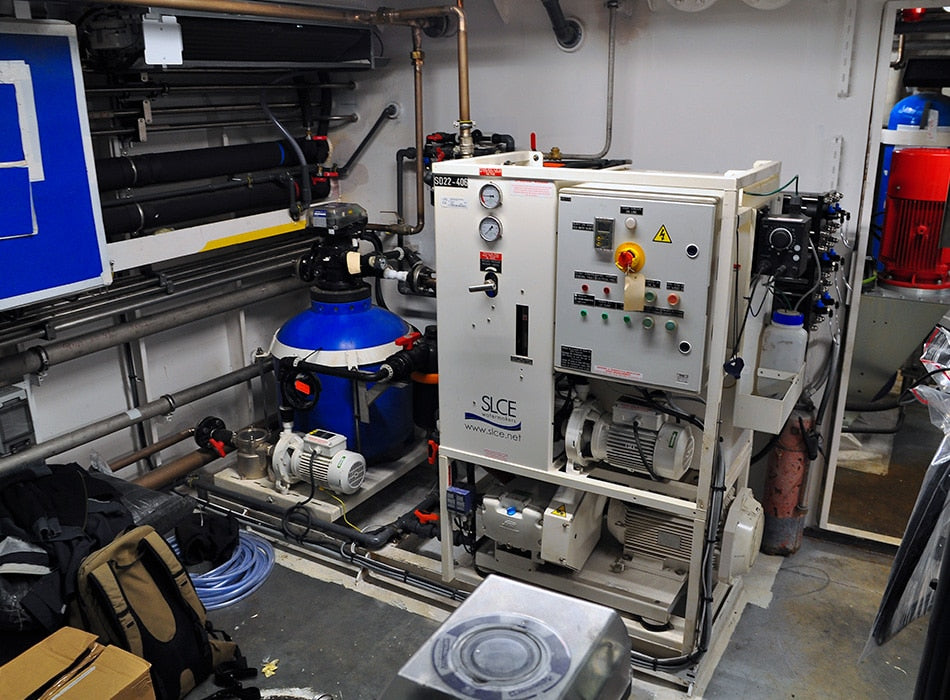 Very compact unit: excellent compromise between production capacity and footprint, suitable for medium tonnage vessels or land applications: tuna vessels, frigates, offshore service, yachts, hotels, life bases, etc. Modular: easy installation on existing ships Standard units come with the following features: