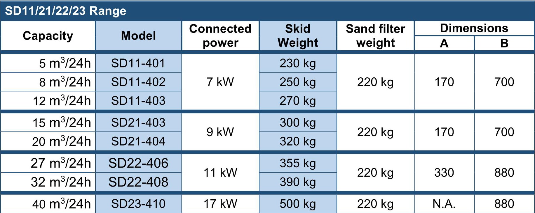 Range SD11/SD21/SD22/SD23